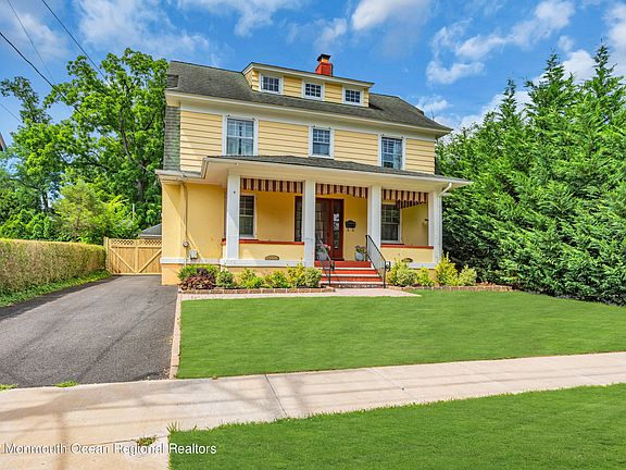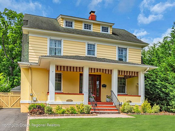 This stately Dutch Colonial home has all the charm and character of Historic Freehold. Located on one of the most desirable streets in the Boro, enjoy a short walk to Main Street restaurants and shops. Featuring 4 generous sized bedrooms and 2 full baths, it also has a kitchen that is designed for cooking, with a stove side pot filler, and entertaining at the adjacent soapstone bar. The spacious living room has a wood burning fireplace and hardwood floors are throughout the home. Additionally, this house sits on an oversized, fenced in, lot with a newer, expansive, paver patio and detached 2 car garage for plenty of off street parking. Bonus third floor walk up is unfinished but perfect for a master suite. **Below market mortgage rates available for this property. Restrictions apply.