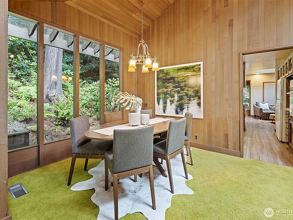 A Mid-Century Retreat designed by Ralph Anderson. Nestled in a serene setting, this Pacific NW Contemporary blends architectural distinction with the warmth of clear cedar finishes both inside & out! Expansive windows, skylights, & vaulted ceilings fill the interiors with natural light. The upper level showcases the kitchen, dining, living, & family rooms, all with seamless flow to expansive decks & patios. The lower level provided you with the private Primary Suite, featuring a wood-burning fireplace & patio, as well as the additional bedrooms. Mature landscaping encompasses the covered entry, setting the tone for this exceptional residence. Peacefully tucked away from the city, yet close to all the island’s many amenities. You'll love it!