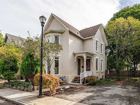 Get ready to fall in love with this Classic Historic Rochester home! Loaded with old world Character and Charm. Located on a quiet neighborhood street yet situated in the center of all the action! Would make for an ideal owner occupant or a fantastic investment property. Truly turn key with nothing to do but move right in. ALL the mechanics are in great shape boasting a Brand new tear off roof in 2022, Brand new hot water tank in 2023, High efficiency furnace in 2015 and all brand new gutters. Recently Refinished Parquet Floors throughout the first floor, freshly painted throughout, soaring tall ceilings, and desirable exposed brick in the kitchen. Upstairs you'll find 3 bedrooms, a full bath, cozy reading nook, new carpeting in two of the bedrooms, and cool distressed wood flooring. Great outdoor space with brick walkway leading to a private back yard with fire pit and shed for storage. Showings begin Thursday the 26th and offers are due Tuesday October 1st at 2 pm.
