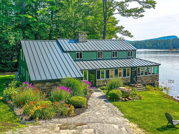 Kezar Lake living right on the water! Properties like this one are hard to find. Enjoy the beautiful flower beds and sandy beach or the private back yard patio leading to a fire pit and dock. Enjoy water views from the 3 season wrap around porch. The home was completely renovated and combines the old with the new in perfect fashion. Stunning fieldstone fireplace, custom woodworking, beautiful wood floors and custom wrought iron stair rail. Gather in the spacious kitchen that is perfect for entertaining large groups. New cabinets, granite countertops, stainless appliances, wine ''cellar'' and a beautiful wood slab island. All new electrical, plumbing, heating/cooling, insulation, windows, and roof. This 2-acre lot is located in a small cove in Kezar's Middle Bay. Detached 2 bay garage for cars, boats or storage. Small outbuilding for storage or possible bunkhouse. Potential for year round dwelling. Close to GLLT and White Mountain hiking trails.