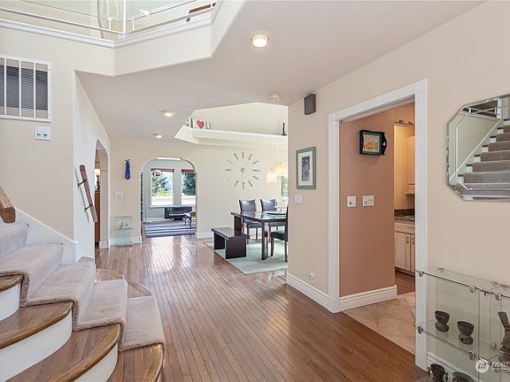 Lake Whatcom view w/ archetectural design in every corner of this beautiful custom home. 5-min walk to beach & golf course. Bright, vaulted ceilings, built in vacuum, wired for a generator. Upper level primary BR w/jetted tub, steam shower, 2 walk-in closets & private deck + 2nd BR w/ full bath. Main level has spacious gourmet kitchen w/ granite counter, island w/ stools & stainless appliances. Daylight basement w/ 2 BR, full bath, bonus room & 2nd kitchen can be guest/in-law suite. All windows in main kitchen & few windows in primary BR are filmed for privacy. New furnace. Some furnitures & tools are negotiable.
