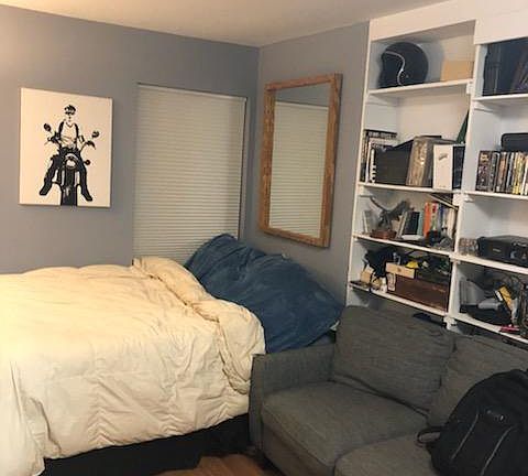 This is a great spacious 1-bedroom fitting queen size bed plus desk with a separate kitchen area. (no living room) Similar to a studio layout.