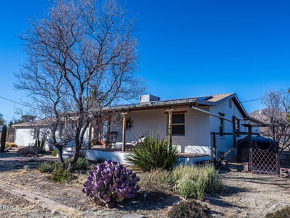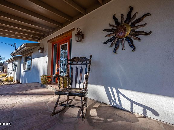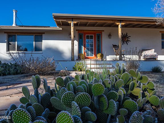 This is your Arizona Dream!! Main house, Guest house and detached Office/Workshop. Incredible 3 bdrm 2 ba Main house, renovated in 2014, has second kitchen in utility room, fireplace in master bdrm, R-19 and R-50 insulation and boasts 2023 grid-tied solar to reduce electric bill. Guest house has large, handicapped accessible bathroom with double sinks and walk-in, tiled shower, plus large walk-in closet with washer/dryer hookup, and additional half-bath. (Current tenant has lease through 6/30/2024.) Detached Office/Workshop is fully insulated with electricity. Fully fenced, landscaped yard has many seating areas including 4 patios, 3 gazebos, various terraced garden areas, several mature fruit trees and a 1550 gallon water catchment storage tank for watering your garden. Don't wait!
