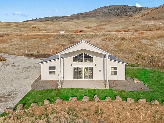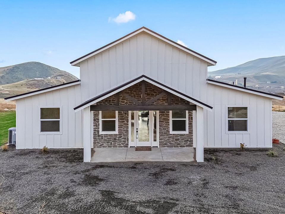 Exscape the city! New construction, fully custom barndominium with massive mountain, river, and valley views. Monitor barn–inspired exterior with an extraordinary interior blending rustic charm and luxury finishes. Single-level living with soaring ceilings, a great room layout, and an open bonus loft. Features 3 bedrooms plus office. Primary suite with walk-in closet and tile shower. Split floorplan with "jack and jill" inspired bathroom. Covered rear patio overlooks breathtaking views. Find your solace surrounded by scenic beauty and year-round outdoor recreation—just 40 minutes to downtown Boise. Set on 2.5 acres for privacy and space for toys. Detached shop upgrade available. Built by renowned local builder Cascade Custom Construction.