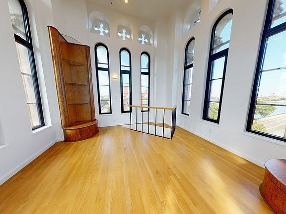 Architectural Digest castle style home- the entire tower unit of renowned full service Church Court building in the Back Bay-- boasting Boston's best 360 degree view from the peak. Floor by floor living, walk into an amazing foyer with washer/dryer, half bath, and soaring ceiling height. A chef's eat-in kitchen with gorgeous custom jewel toned cabinetry, stainless steel appliances, huge island / kitchen table, storage galore, and floor to ceiling windows. A stunning living space with a couch and a coffee table that can expand to be a dining table. Access to a private terrace that overlooks the gorgeous landscaped courtyard. Office / 2nd bedroom with couch that transforms to a bed. Full bath. Spectacular main bedroom. Gorgeous reading landing. Top floor is a jaw dropping design masterpiece with floor to ceiling windows and million dollar views. Exposed stone wall, central AC, and hardwood floors throughout complete this property.