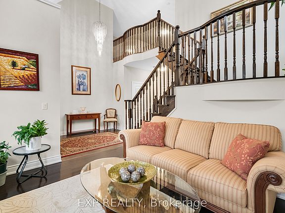 Welcome to 6 McMahon Court, a beautifully designed detached home in Oak Ridges, Richmond Hill, backing onto a private ravine. This elegant residence offers a rare main-floor primary bedroom, a finished walk-out basement, and a functional 4+2 bedroom layout perfect for families, multigenerational living, or investors.A welcoming cathedral-ceiling foyer with ceramic floors leads into a bright open-concept main level. The spacious living room features soaring ceilings and front-yard views, while the formal dining room with coffered ceiling provides an inviting space to entertain. The cozy family room with cathedral ceiling anchors the home.The kitchen boasts stainless steel appliances, a centre island, and ceramic flooring, flowing into a sun-filled breakfast area with walk-out to the ravine yard, ideal for peaceful morning coffee. The main-floor primary bedroom features a walk-in closet and 5-piece ensuite, offering convenience and privacy.Upstairs you'll find three generous bedrooms, all with large windows and closets, plus a versatile open sitting area - perfect for a lounge, study, or home office - along with a 4-piece bath.The bright walk-out basement offers excellent potential, featuring a spacious open-concept living area, kitchen with island, 2 large bedrooms, and a full bath. This level enjoys large windows and direct yard access, making it ideal for extended family or rental use.Additional features include double car garage, hardwood floors on main/second, cathedral ceilings, and abundant natural light.Located on a quiet court close to trails, ponds, parks, top schools, shopping, dining, community centres, GO Transit, and Hwy 404.A rare ravine-lot opportunity offering space, flexibility, and natural beauty - don't miss it!