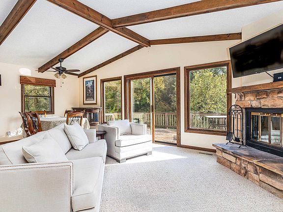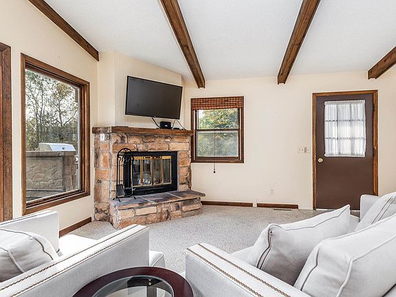 Tucked away at the end of a quiet cul-de-sac, this inviting 3-bedroom, 2-bath home offers the perfect blend of comfort, privacy, and natural beauty. Set on a wooded 1.66 acre lot, the property boasts a serene backdrop of mature trees, offering a true sense of seclusion. Inside, you’ll find a welcoming main level with an open living room, dining area, and kitchen featuring granite countertops and stainless steel appliances. Two bedrooms and a full bath complete the main floor. The finished walk-out lower level provides plenty of extra living space, including a large open family room with a wood-burning stove, a full bath, and a spacious 13x10 bedroom. The lower level also includes the laundry area and direct access to the outdoors. Recent mechanical updates include a high-efficiency gas furnace (2021), new water heater (2018), and a whole-house water filtration system—adding comfort and peace of mind for the next owner. Enjoy morning coffee or evening relaxation surrounded by nature, with the peace and quiet that comes from being at the end of a dead-end lane. Ownership includes access to The Galena Territory’s extensive amenities—lake, pools, trails, and recreation centers—all within minutes of Eagle Ridge Resort & Spa and historic downtown Galena. Sold as-is.