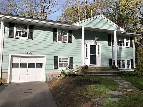 Wonderful cul-de-sac neighborhood location for this updated turn key two level 3 bedroom 2 bath home with direct access garage. Updates include newer roof, hot water tank, paint, electrical and tile. Kitchen has new granite counter tops with subway tile backsplash, stainless steel appliances and tile flooring. First level has all beautiful hardwood floors in living room, dining room and 3 bedrooms. Lower level has finished family room with fireplace and wet bar, office/guest room and full bath with tile flooring. Heated garage with workspace. Relax on deck off kitchen to beautiful backyard with 2 sheds for storage. Large yard abuts to conservation land. Town Water, Town Sewer and Gas utilities.