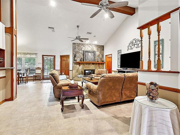 Spacious All Brick One-Story Open Floor Plan with Two Primary Suites. Den Features Custom Cathedral Ceilings, Double Sided Fire Place between the Den and Office/Game Room (will fit pool table). Breakfast area has Stunning View of the Rear Yard. Living Room & Dining Room features Nail-Down Real Wood Floors. Recessed Lighting, Exposed Beam, & Architectural Beamed. GE Slate Finished Finger Print Resistant Kitchen Appliances (Refrigerator included with the sale). Professionally landscaped front and rear yard with a Gazebo and a Screened in Porch with Tile Floor. Two New HVAC units. Washer & Dryer included with the sale. Terminix Termite Contract (Bait and Liquid Treatment). Lots of Parking in the huge Driveway and Oversized Garage.