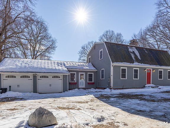 6 Millington Road sits quietly on 5.21 acres of Connecticut countryside, surrounded by trees, open sky, and the kind of stillness that feels increasingly rare. This classic Dutch Colonial-style home carries warmth in its bones - from the rich wood beams and brick fireplace to the hardwood floors and sun-filled rooms. The layout offers 3 bedrooms and 2 full baths, along with a lower-level space ready to become additional living area, studio, or recreation room. The 2-car attached garage adds convenience, while central air and 200-amp service provide modern functionality. A new oil tank has already been installed, and the home has been professionally cleaned. In the backyard sits a large red barn with electricity, and further potential for horses, chickens, or workshop space. Just 5 minutes from Devil's Hopyard State Park, outdoor adventure is practically in your backyard - hiking trails, waterfalls, and scenic beauty year-round. This property is being sold As-Is and will require updates and improvements. It is not turnkey. For those who see potential where others see projects - this is where the story begins. A cleaning solution was applied to the front of the roof which will decrease the amount of moss over the next few weeks. There is working electricity in the red barn.