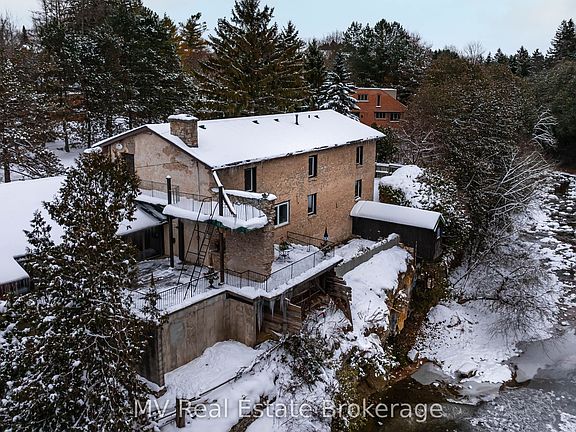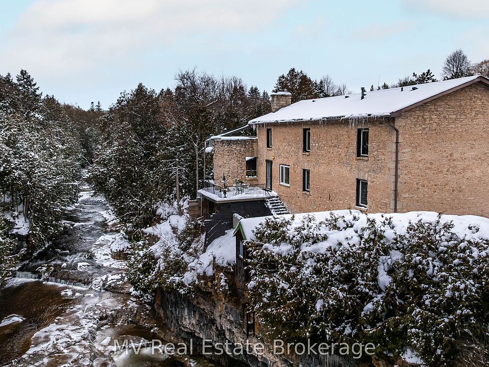 Originally built in 1856 as a mill, this extraordinary property blends historic significance with masterful craftsmanship. Set high above the gorge with the peaceful sound of the waterfall below, this is a private, serene, and truly magical piece of Elora you may not have known existed. Owned by the same family since 1965, there is truly no other property like it.The original stone exterior, hand-chiseled out of limestone from the riverbed, has been meticulously preserved, while the interior has been completely rebuilt and restored from the foundation up. Step inside to discover stunning post-and-beam construction with reclaimed, hand-hewn beams, thick handmade doors, and the unmistakable warmth of a century-old structure-yet updated for comfortable living. The kitchen counters, crafted from 100-year-old planks, pair beautifully with art-deco lighting throughout. With no interior supporting walls, the layout offers flexibility for future redesigns if desired.With five bedrooms and generous yet comfortable living spaces, the home is ideal for a single family seeking their dream home, while also being well-suited for multi-generational living or retreat-style use (buyer to confirm permitted uses).Additional highlights include a unique drive-through stone garage with upper storage, a large, dry unfinished basement plus wine cellar, and a concrete deck overlooking the river and waterfalls-an exceptional place to relax and take in the natural beauty surrounding this one-of-a-kind home.Tired of traffic to the cottage or the noise once you arrive?At 6 MillRidge Estates, you'll find the peace, quiet, and beauty you've been searching for-right here in Elora.A truly one-of-a-kind historic residence, thoughtfully reimagined as a warm, inviting, and unforgettable home.