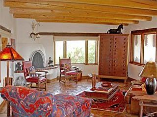 Charming Quintessential Santa Fe Pueblo Style Home On A Hill On 5 Heavily Treed Acres 5 Miles Northwest Of The Santa Fe Plaza. Amazing Views And Privacy. Everything That Defines Santa Fe - Adobe, Vigas, Kivas, Portals, Saltillo Tile, Courtyard. Passive Solar. Furnishings Available. Adjacent 5 Acres Also For Sale.