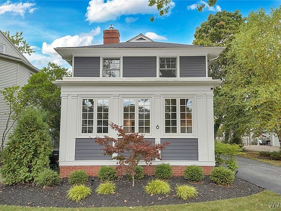 Welcome to 6 Morris Avenue! A rare opportunity in Buffalo’s highly desirable Central Park neighborhood—a beautifully maintained & thoughtfully upgraded 3 bed, 2.5 bath, that effortlessly blends character w convenience. A large, open-concept layout anchored by a contemporary, eat-in kitchen & generously sized dining area w built-ins. It features granite counters, modern soft-close cabinetry w stylish hardware, recessed & pendant lighting, tile backsplash, touch faucet, SS appliances incl range hood/exhaust, double ovens, undercounter microwave drawer, & a built-in beverage/wine fridge. Warm, elegant hardwood floors throughout the first floor, w a gas insert fireplace (NRTC) offering a cozy focal point in the main living area. The living room connects to a bright, beautiful sunroom drenched w natural light. Upstairs, the home offers 3 well-appointed, carpeted bedrooms, including a primary w updated ensuite ('19) w recessed lighting, tiled shower, sleek glass, & custom closet system; a second highly functional bedroom; & third bedroom that is truly unique—massive in scale & consisting of three adjoining rooms, each w separate doors & a central space separated by stylish pocket doors. This provides incredible flexibility & could also serve as a substitute primary, expansive guest suite, creative studio, home office, or all of the above. Another full bath w tiled shower & wainscotting rounds out the second floor. The two-car garage has also been thoughtfully improved w extra lighting & built-in storage w spray foam insulation added to the home’s rear addition, boosting year-round energy efficiency. The rear door opens to a patio w decorative pavers, & connects to a vast, fully-fenced yard w meticulously landscaping & a tranquil, flagstone sitting area. Recent updates prioritize comfort & functionality, including a brand-new HVAC system ('24) w new HE furnace & AC & a new 200-amp electrical service ('24) w upgraded panel. An unbeatable location w close proximity to Delaware Park, the Buffalo Zoo, & the commerce & leisure options of Hertel Avenue. Offers due Tuesday, October 7th at 2pm.