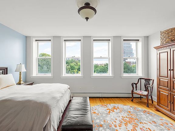 Indulge in the radiant beauty of your very own duplex condo with stunning, unobstructed views of Mount Morris Park. This exquisite, landmarked Harlem Brownstone apartment is nestled in the heart of the coveted Mount Morris Park Historic District. The 3-bedroom, 2.5-bathroom duplex seamlessly blends contemporary and pre-war design elements, featuring herringbone hardwood floors with marquetry, high ceilings (9'7"), and oversized windows that overlook Mount Morris Park and a tranquil community garden. The upscale kitchen is outfitted with top-of-the-line stainless steel appliances, Caesar stone countertops, and a new gas washer/dryer. The large, private master suite provides breathtaking park views, while ample storage space is thoughtfully integrated throughout the residence. In addition, two spacious storage cages in the basement are available for the new owner's use. Building amenities include a beautifully landscaped common garden, convenient under-stoop bike and stroller storage, and a pet-friendly policy. The 2,3,4,5, and 6 trains are located in close proximity, providing easy access to transportation. Please note that the pictures are virtually staged.