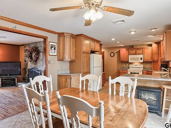 3 Bedroom Ranch home with beautiful in-ground salt water pool. Updated kitchen boast granite countertops tile floor which connects to 1st floor laundry and 2 car garage. Living room has propane fire place and hardwood floors. Master bedroom has private bath. Basement is has possible 4th bedroom, family room, and den heated with propane stove. Home has efficient heat pump, move in ready, all appliances included.