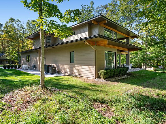 Build-to-suit Frank Lloyd Wright-inspired Prairie-style home to be built on a very desirable wooded lot in the original Charlevoix Country Club Association. This 3,500 sq. ft. 4 bed, 4 bath home offers pure living pleasure with two Owner Suites, a 2.5-car tandem garage with EV charger, Generac whole-house generator, and black stainless appliances including a 48'' built-in refrigerator and 48''dual-fuel range. Features include a Viewrail LED staircase, expansive covered outdoor living areas, and stunning architecture blending stone, wood, and glass to complement the natural setting. Photos are of a recently completed model in the Charlevoix Country Club. Enjoy access to golf, pool, tennis/pickleball, fitness center, and clubhouse dining—all within walking or golf cart distance. Utilities at street. Lake Michigan just ¼ mile away. Built by Drury Construction & Development LLC. Property owner is builder and a licensed Michigan Realtor.