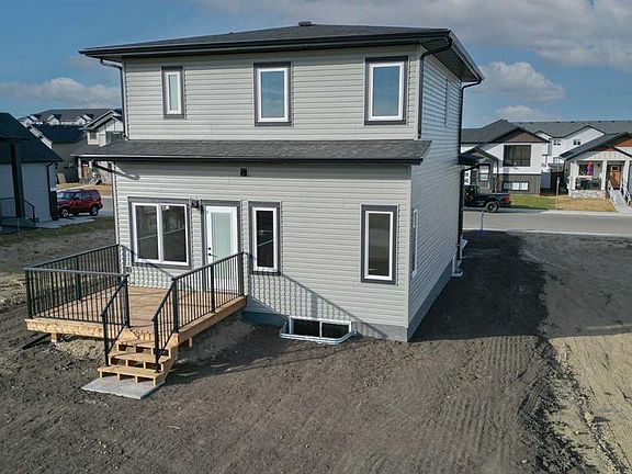 IMMEDIATE POSSESSION AVAILABLE! Brand new 3 bedroom 3 bathroom 2 story home with large attached garage, backing onto a future green space/walking trail. This home is located in popular Iron Gate subdivision in close walking proximity to all amenities! As you enter the home you will be greeted by a good size foyer with closet. The main floor has an open kitchen/dining/ living room design. The kitchen comes complete with stainless steel stove/fridge/dishwasher/microwave, large centre island, quartz counter tops, and pantry. Just off the dining room you'll find a sunny south facing 11.5x10 ft. deck. The main floor also has a 2 piece bathroom conveniently locate near the garage door entry/front entry. Main floor area is finished in luxury vinyl plank flooring. Upstairs you'll find 3 bedrooms, including a large Primary bedroom complete with a 5 piece ensuite with tub/shower and his/hers sinks and a large walk in closet. Convenient upper floor laundry complete with washer/dryer and a 4 piece main bathroom complete this floor. Upper floor is finished with carpet flooring, bathrooms finished with luxury vinyl plank. Other great features include front landscaping, paved rear alley, roughed in central vac, roughed in under slab heat in basement, 10 year new home warranty. Need a 4th bedroom? Seller will fully develop basement with an additional bedroom, family room and 4 piece bathroom for $36380 plus GST.