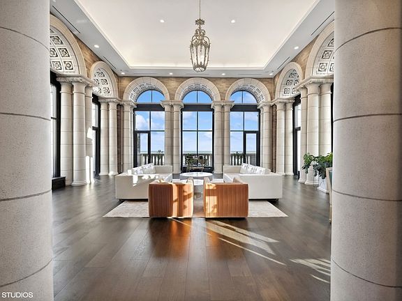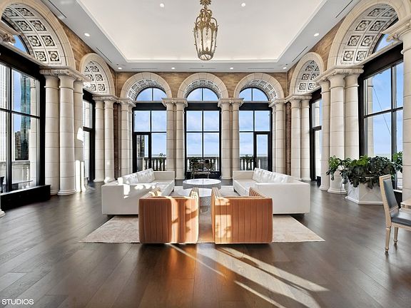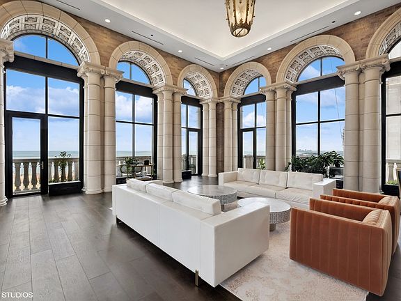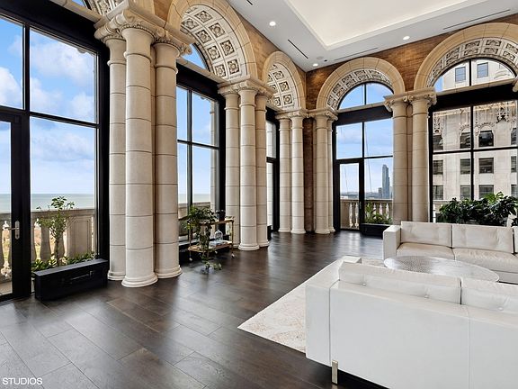 Presenting an extraordinary masterpiece, 6 N. Michigan Avenue is an opulent penthouse that graces Michigan Avenue with its elegant presence. Located atop the building, this four-story home is a bastion of serenity, offering protected city and lake views along with intimate views of Millennium Park, The Bean and Grant Park. Wrapped in a shimmer of natural light, this residence embodies grandeur, scale, and nuanced design, making it a true gem in the heart of Chicago. Coupling its grand, old-world heritage and charm with a modern and sophisticated tone, it makes quite the statement. Spanning over 6,400 square feet on four levels, this home offers four bedrooms, four and half bathrooms and an incredible 2,000 square feet of private outdoor space, set out on 5 separate terraces and decks. The main living level features the original observatory serving as a show stopping living room with ceilings soaring 20' in height, and oversized arched windows that frame the lake, city, and park views. Three terraces allow you to step out and enjoy the scenery. This grand main level is a perfect floorplan with a large family room with a wall of built-in shelves and a discrete bar anchored by a designer chandelier. The open chef's kitchen is appointed with custom cabinetry, quartz countertops and top-grade integrated appliances. The dining area is perfectly situated across from the kitchen and surrounded by windows. Two custom floating staircases are set on either side of the home and provide a statement of their own. On the second and third levels are four spacious bedrooms, abundant closets, and a laundry room. The magnificent primary bedroom retreat is accessed by a private gallery and complemented by two oversized closets, and a custom spa bathroom. The pinnacle of this home is the fourth floor, graced by a breathtaking glass skylight - this luxurious den / library is lined with bookshelves, a full bathroom and direct access to the most spectacular outdoor roof deck. The current owners spared no expense on building out two private roof decks which offer an outdoor experience sitting atop the city. Meticulously designed by Rooftopia, this custom-built haven boasts a steel & ipe pergola with a unique steel screen pattern. The custom 18-foot bar ledge has views of the Art institute, Shedd aquarium Field Museum as well as Soldier Field and of course Lake Michigan. The luxury outdoor kitchen maximizes the options with a built-in grill, dishwasher, ice maker, refrigerator, and sink. The day bed is a soft oasis in the sea of buildings. Large planters emphasize the grand entrance, flanking new limestone steps and handrails, a mix of lush perennials and annuals soften the cityscape. A small green roof space adds to the overall aesthetic, offering 360 views of the city skyline and Lake Michigan. Both decks feature a fully integrated sonos system and wifi making them truly a dream for relaxing, outdoor dining and entertaining. This home is a haven for all seasons, captivating with its elegance and charm. An extraordinary opportunity awaits those who seek a property of remarkable significance in the world's most coveted city. In the Heart of Chicago: this home is surrounded by the city's finest cultural offerings and an array of restaurants. For boating enthusiasts, Chicago Yacht Club offers the possibility of a boat slip. Two garage parking spaces included in the sale of this home, one comes with a built-in Electric vehicle charger.