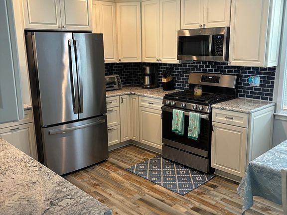 Gorgeous two bedroom, one bathroom condo in Ventnor, New Jersey. This furnished condo is two blocks from the beach. It has a spacious eat in kitchen with seating for six, granite countertops, stainless steel appliances, including a five burner gas range. Adorable breakfast bar seats three additional guests and a large cozy sectional is the perfect place to unwind after a long day at the beach or work. One room has a king size bed with plenty of room for all of your belongings! The second bedroom features full bunkbeds with a trundle bed underneath. This home has a GHome set up to play music and videos. Two smart TV's included. It also is equipped with a smart TV for all of your streaming needs. There is a coin/apple pay laundry facility within the complex right next door and heat and water are included in the rent.