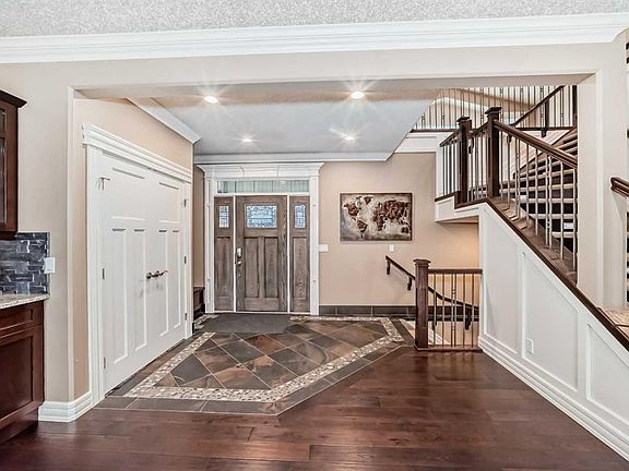 Former Show Home in prestigious Windrose offering over 3,500 sq. ft. of finished living space with 4 bedrooms (easily 5) and 5 bathrooms. The oversized heated garage with epoxy floors and in-floor heating sets the tone for the quality inside. Elegant details like engineered hardwood, slate tile, crown molding and wainscoting create timeless charm. The vaulted bonus room with bay window seating and fireplace is perfect for cozy evenings. A chef’s kitchen with two-tone cabinetry, granite counters, island seating, stainless appliances and a walk-through pantry makes cooking and entertaining a joy. The primary suite is a true retreat with his and hers ensuites—one with steam shower, the other with jetted tub and dressing vanity. Upstairs laundry adds convenience, while custom built-ins maximize storage. The finished basement offers a 4th bedroom, rec space, bathroom and option for a 5th bedroom. With A/C, dual furnaces, multiple fireplaces, and a south-facing yard with covered deck. Comfort and Style!