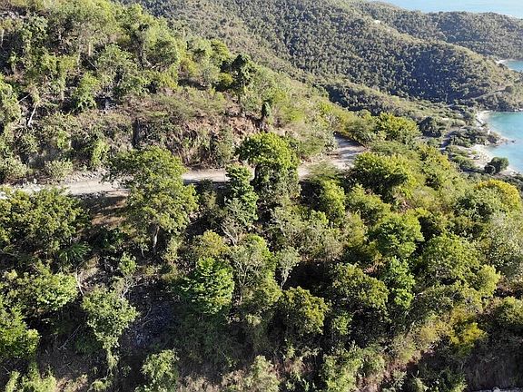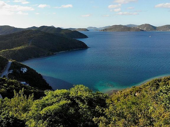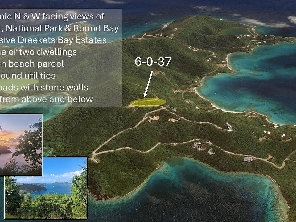 Panoramic 180-degree+ views of the British Virgin Islands, VI National Park & Round Bay. This property faces north/northwest, so it enjoys the island's incredible sunsets in addition to its spectacular daytime views. This .51-acre parcel is located in the exclusive Dreeket's Bay Estates subdivision on St. John's quiet East End. It has paved roads with beautiful stone walls, and underground utilities. There is access from above & below the lot, making construction easier & more accessible. The property also has a deeded special waiver of HOA setbacks to maximize build area due to its narrow site. Beach access. Sellers will entertain owner financing for qualified buyers.