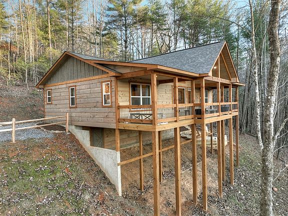 Country roads take me home enjoy soaking in the beauty of the North Georgia mountains along Fightingtown Creek, lovely farmlands, and, of course, mountain views as you travel up and away to the one and only Oasis at Ritchie Creek. This charming rustic ranch is perfectly positioned with the year-round mountain view as the focal point. The outdoors offers a covered front porch and covered back deck with plenty of seating for a little rest and relaxation, and a large firepit to enjoy s'more R&R! It offers an all wood interior tastefully furnished and decorated to create a modern rustic appeal. The open kitchen, living, and dining area also overlooks the view with plenty of natural light flooding in to create a warm and cozy environment for both you and guests! The kitchen offers stainless appliances and an island with bar for additional seating. On each side of the home you will enjoy an ensuite, and the primary suite even features a double vanity and tile shower. Each bedroom is very spacious with king size beds, and the laundry is tucked away just off the kitchen. This beautiful cabin is located near the Cohutta Wilderness with hiking/biking trails, fishing, and more at your fingertips – the outdoor lovers dream – and for those who love indoor entertainment, you are just a quick drive into both Blue Ridge and McCaysville for shopping, dining, and more! Whether you're considering full-time living, your home away from home, or an investment property, this beauty fits the bill and is offered turn-key!