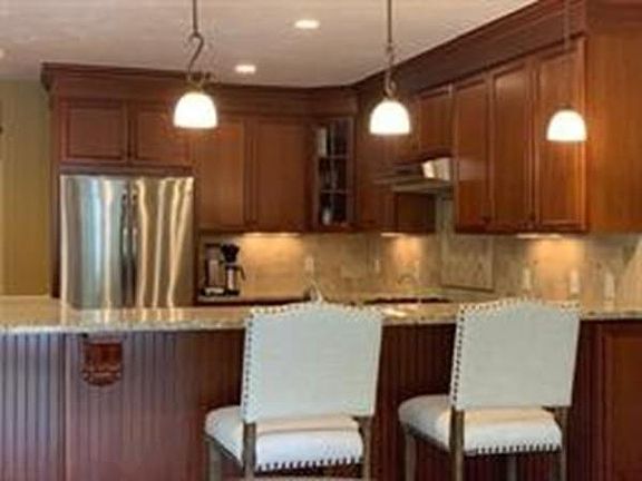 - Kit Dscrp: Flooring - Hardwood, Countertops - Stone/Granite/Solid, Breakfast Bar / Nook, Recessed Lighting, Stainless Steel Appliances, Cabinets - Upgraded, Exterior Access