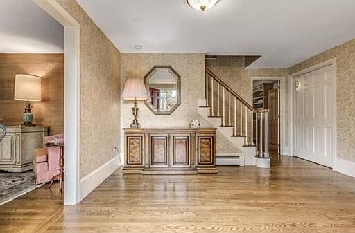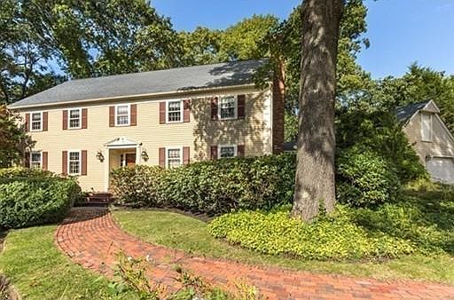 Wonderful 10 Room Colonial located in highly desired Thaxton neighborhood featuring 4 large Bedrooms and 2.5 Baths with an attached 2 Car Garage. Perfectly set on a private lot with stone walls, brick walkways and a lovely rear brick patio. The interior of this home offers a very nice floor plan with sunny entry foyer leading to spacious rooms and 2 fireplaces. Private study/home office. Hardwood Floors complete the foyer, living room, formal dining room, and eat-in kitchen. The spacious second floor features beautifully laid out bedrooms, with a master suite and sewing or computer room. Large basement with NEW Buderus Heating System. Lawn Irrigation system. This property has been well maintained by the original owner. Some cosmetic updates may be desired. Rare opportunity to own at this price point in this neighborhood. Much sought after elementary school. Easy access to commuter rail and Boston.