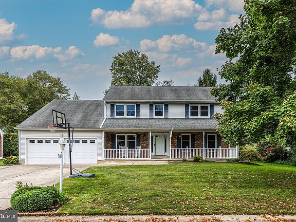 Welcome to your dream home! This 5 bedroom colonial boasts a charming full-length front porch with elegant railing, perfect for enjoying your morning coffee or evening sunsets. Step inside to discover beautiful hardwood floors gracing the living room, dining room, and dedicated office, offering a seamless flow throughout the main level. The heart of the home is the expansive kitchen, featuring pristine white shaker cabinets, stainless steel appliances, and luxurious granite countertops. A stainless steel farmhouse sink and abundant cabinetry make this space both functional and stylish. Off the kitchen, a separate office area provides the ideal workspace, while the adjoining laundry room features convenient tile flooring. Entertain effortlessly in the family room, highlighted by a vaulted ceiling and a cozy gas fireplace. The room opens to a delightful three-season room, leading out to a spacious deck that overlooks a beautifully fenced backyard, complete with a storage shed for all your outdoor needs. The formal dining room exudes sophistication with its chair rail, wainscoting, and crown molding, creating an inviting atmosphere for gatherings. A main floor powder room with charming bead board adds a touch of character. Retreat to the master suite, featuring an on suite bathroom with double sinks, a luxurious tile shower, and two generous closets. All bedrooms are equipped with ceiling fans for added comfort, and the hall bath offers both a tub and double sinks, tastefully appointed with tile. Additional features include a finished basement with two sump pumps equipped with battery backup, ensuring peace of mind. Vinyl windows throughout provide energy efficiency, and the home's prime location offers convenient access to shopping, dining, and major highways. Don't miss the opportunity to make this beautiful colonial your own—schedule a showing today!