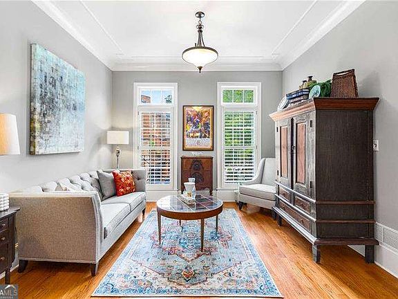 CANDLER GROVE TOWNHOMES IN DECATUR: Brick, Fee Simple Townhome with natural light flowing through floor to ceiling windows with transoms and abundant quality finishes: solid oak site-finished hardwood flooring throughout, coffered ceilings, cove molding, wooden interior shutters throughout, and recessed lights. Candler Grove is a small community of 23 townhomes centered around a common green space, located a few blocks from downtown Decatur/ Decatur Square, Clairemont Elementary School, Glenlake Park and Pool, and the MARTA train station. City of Decatur schools are rated among the best in the state. Great room includes the family room, the kitchen, and a breakfast area. Family/ keeping room has built-in bookcases, a fireplace with gas logs, and a wall of windows and French doors. Open kitchen boasts stainless steel Viking Professional appliances (6 burner gas cooktop, in-wall convection oven, bottom freezer refrigerator, dishwasher, built-in microwave), exterior venting hood, walk in pantry, pendant lights, under cabinet lighting, classic Shaker style wood cabinetry, bar seating. Private deck with custom retractable awning runs the entire width of the townhome. Separate living room could easily function as a distinct library/ home office space. Formal dining room. Primary bedroom suite has hardwood floors and a large custom walk-in closet. Primary bathroom features double vanities, a jetted tub, a separate shower, and a separate water closet. 2 additional upper floor bedrooms, also with hardwood floors, share a full bathroom. Laundry room is located on the upper (bedroom) floor. Large lower floor bedroom has access to a full bathroom as well as a patio. Entry hall on lower level has bench seating with storage and hooks. Two car garage with electric car charger. New roof in 2023. The City of Decatur is conveniently located on a MARTA train line with its own station. Decatur's proximity to Emory and the CDC attracts talent from all over the world. Midtown and Downtown Atlanta are nearby as well. The City of Decatur school system is renowned for excellence. Decatur is host to numerous yearly festivals and events, e.g. Decatur Book Festival, Decatur Beach Party.