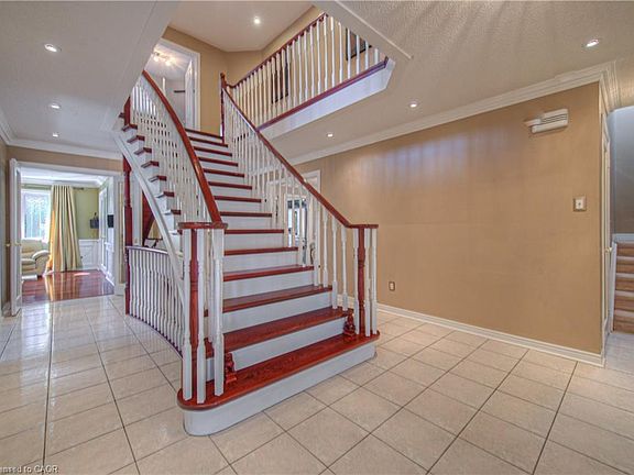 Former Model home occupied by loving original owners! Absolutely stunning home with In-law or Teenager's suite on a private side of the home with walk-in closet and full bath! Meticulously maintained Feng Shui oriented home with a Heated Sunroom and a Stunning staircase built to size in the home! You will be charmed by the elegance and charm of this home with extensive Crown molding, Hardwood, Wrought iron special designed mirrors & cabinetry, Extensive Granite & Marble as soon as you step into this home that just keeps going on and on. The home spans over 5,000 sqft of living space with 5 bedrooms, 3.5 bathrooms, amazing Sunroom with gas fireplace and heated marble flooring open to both sides of the yard with sliders, 4 bedrooms on second level with 3 full baths, Master bedroom with two Walk-in closets or make one into Nursery plus a Spa like ensuite with a Soaker tub, Glass shower, Heated towel bar, His & Hers sinks, marble heated floors; Fully finished basement with oversized L-shape Rec room with gas fireplace, Exercise room, extra pantry/wine cellar. The main floor has an elegant office with wood paneling, Formal dining room with a beautiful one piece special design mirror, Living room/working room for home business, Family room/Den with a cozy gas fireplace, modern Chef's kitchen with marble countertops with top of the line appliances! The yard is fully fenced, has mature trees and is full of beautiful perennials. The home was fully renovated in 2018-19 Kitchen, Basement, Sunroom, Mudroom, Spa Ensuite, Powerless Kinetico water softener with torking system, RO, Eaves Guard, All new potlights, All windows, Front door. Other updates include: Roof 2012, AC 2017, Central Vacuum, Furnace & Hot water heater Nov 2024, Gas hook up for BBQ. Double garage plus the interlock driveway can park 6 cars! Just minutes from 401, Shopping, Schools, Trails, This home is a rare find that offers a perfect blend of luxury and elegant living style in a family oriented neighborhood.