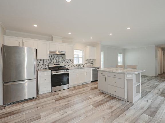 Experience the epitome of peaceful country living in this modern, spacious home nestled in a tranquil residential setting. This "extra-wide" manufactured home offers a generous open concept floor plan- perfect for your comfort, without ever feeling cramped. Only two years young, this home features a beautifully designed kitchen with a built-in island, ideal for meal prep and gatherings. Ample cabinet and counter space, sleek finishes, and Energy-Star appliances truly make this kitchen a chef's dream! The primary bedroom is a welcome retreat with two roomy walk-in closets and an ensuite full bath. A very sizable living room, sunny second bedroom, additional modern full bathroom, and dedicated laundry center ensure easy convenient living every day. Enjoy the unique, gorgeous vinyl floors and tasteful finishes throughout. Located in the highly desirable Oyster River School district, this pet-friendly community is fabulously located! You'll adore the small quiet park, and appreciate being so close to major routes, minutes from UNH, and a quick commute to Dover and Portsmouth! Shopping, dining, medical and entertainment are all nearby. Spend this summer outside enjoying both of your two ample decks- perfect for relaxing, grilling, or entertaining. A very useful shed provides additional storage for tools and outdoor equipment. Affordability + Prime Location make this an Amazing opportunity! Don’t wait to see this one!