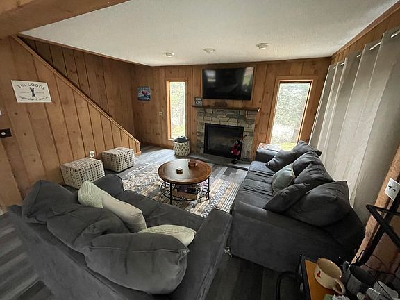 Lovely 'turn-key', immaculate 3BR/2BA home located in lower section of Chimney Hill on a private, level corner lot at the beginning of a cul-de-sac.  Owners received it in good condition: now, it's better. Improvements made in 2021: All Furniture; Rear Windows; Appliances; Gas fireplace, large enough to heat the house; Wifi Lighting, remote thermostats & locks; Fire pit / lounge area in yard; First floor bedroom flooring. The Valley Trail & VAST trail are just across the road for access via 4 season trail use. The natural wood interior has lots of light with 2 sliders from main living areas to deck & yard. Open concept main level with gas fireplace. 1st floor bedroom, recently renovated full bathroom. S/S appliances in kitchen & a nice mud room. Upstairs, two more large bedrooms & great finished storage area that could make a great nursery or office space. Standing seam metal roof. Enjoy all of the amenities that Chimney Hill has to offer including Clubhouse w/indoor & outdoor pools; exercise room; tennis, basketball, skating rink & more. Chimney Hill is located on the South side of Haystack Mountain & minutes to Hermitage Club, Mount Snow, skiing, golf, Lake Whitingham & downtown Wilmington shops & restaurants. Prospective Purchasers: current owners have AirBnb/VRBO bookings in place for spring/summer/winter should you wish to take over those revenues.