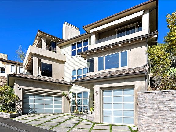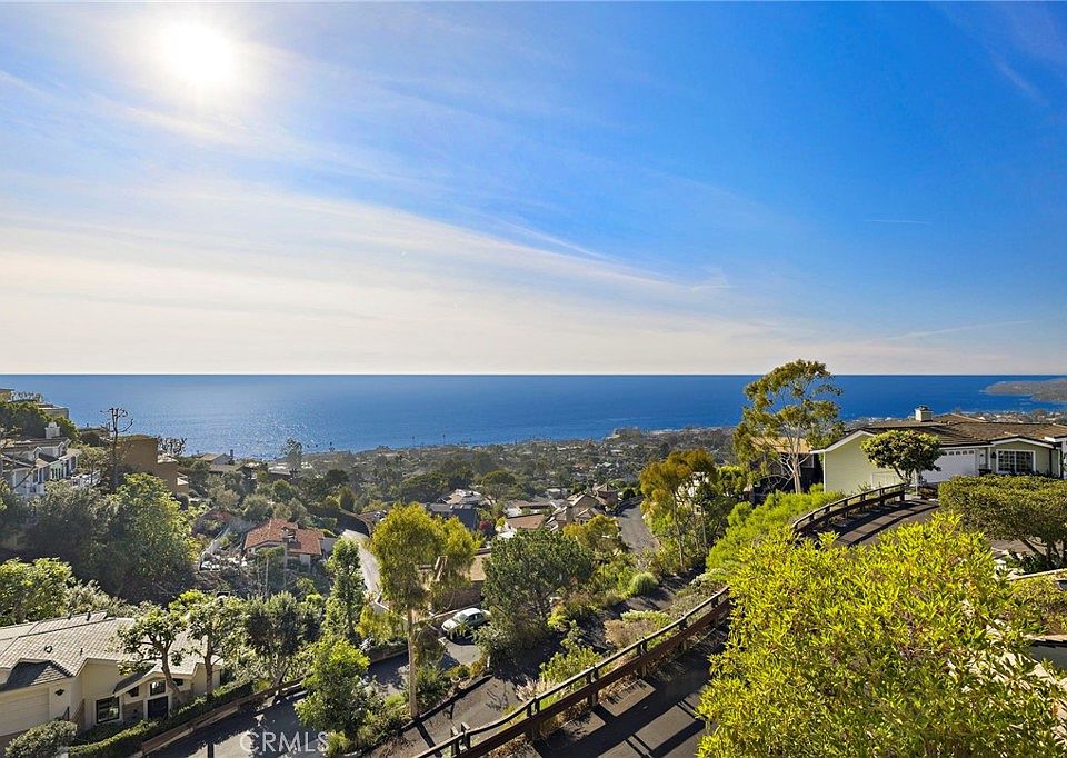 Positioned at the top of a quiet cul-de-sac in Laguna Beach, this home offers sweeping, uninterrupted views of the Pacific, Catalina and the dramatic Laguna coastline. The setting offers both privacy and easy access to Woods Cove and Moss Point Beach, two of the area’s most beloved stretches of sand. With just under four thousand square feet, the property includes four spacious bedrooms, and 4.5 luxurious baths. The primary suite features a fireplace, dual sinks, a soaking tub and a private terrace facing the water. The upper level also includes a comfortable secondary living area with the home’s second fireplace. The main level centers around a large chef’s kitchen with high end appliances, a generous island and an adjacent pantry and laundry room with elevator access. The dining area and main living room capture the ocean views and open to outdoor space for easy entertaining. Several additional terraces and patios around the property offer more options for outdoor dining and relaxing. Nestled in a tranquil location near world-class dining, shopping, and art galleries, this home embodies the very best of Laguna Beach living.