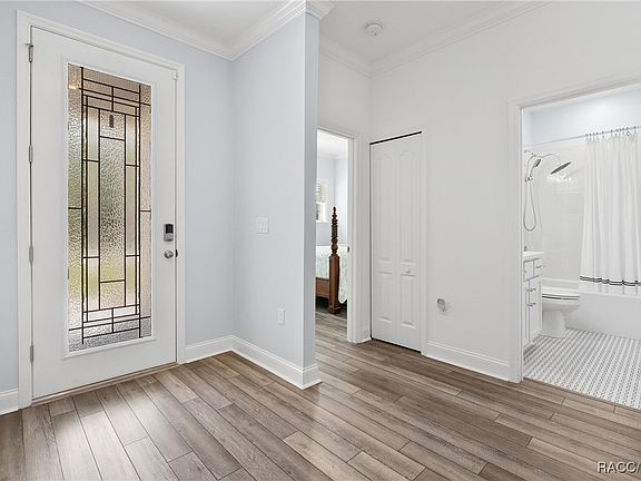 Why wait to build when this upgraded home is already better than new? Located in the highly sought-after Sugarmill Woods community, this 3-bedroom, 2-bath home offers a serene retreat with a lush greenbelt view. Inside, you'll find luxury vinyl plank flooring throughout—no carpet anywhere—and an open floor plan that seamlessly connects the living, dining, and kitchen areas. Crown molding adorns the main living spaces and bedrooms, while upgraded light fixtures and fresh paint create a bright, modern atmosphere. Dimmer switches throughout add to the home's thoughtful design.