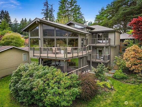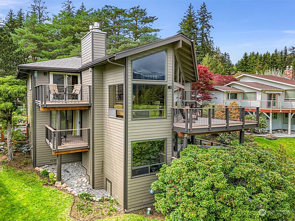 Introducing a one-of-a-kind luxury home that seamlessly blends modern architecture w/ breathtaking natural beauty. Situated on the golf course, this magnificent property boasts stunning Lake Whatcom & Stewart Mountain views. The expansive layout features vaulted ceilings & ample natural light that creates a bright & airy ambiance throughout. Relax & unwind in the hot tub or sauna after a long day while enjoying the serene surroundings. Each of the bedrooms has a balcony with a view, offering a peaceful retreat to take in the picturesque scenery. There is also a studio for the creative-minded to hone their craft. Gorgeous flower gardens, too. This architecturally designed home is a true masterpiece that must be seen to be fully appreciated.