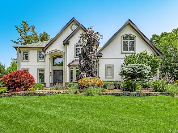 Wow! Just in time! Retreat to the suburbs – quiet, luxurious and private – yet still close to everything. Only 40 minutes to Manhattan. Located in the prestigious Montebello Pines (exit 14B on I 87)— this turn-key home is a rare find – just move right in. Everything has been done for you in style. Situated on a sprawling one-plus-acre of land and infused with uncompromising quality, design, and detail, this property evokes the feeling of a world-class resort while offering all the comforts of home. The outdoor grounds feature a resort-style pool with waterfall and 5-person hot tub, lush landscaping for maximum privacy, two pergolas, Belgian block surround, a wood-burning fireplace, expansive outdoor kitchen with granite countertops, and vast paver patios. This property provides the ultimate space for entertaining or unwinding in style, both outside and inside. From the moment you step inside, the dramatic double-story entry sets the stage for the elegance that defines every inch of this property. The main level features a gracefully appointed living room that flows into a formal dining room (with plenty of room to expand for gatherings), while the chef's kitchen is nothing short of breathtaking, with a huge island, quartz countertops, a porcelain backsplash and top-of-the-line appliances, including two refrigerators and two dishwashers. A stylish open family room features a unique, modern wood-burning fireplace and massive windows to bring the outside in. A private office/bedroom offers comfort and functionality. The side entryway, with an enclosed sink area and secondary laundry, plus an oversized three-car garage, complete the main level.