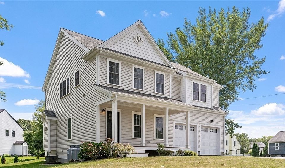 Discover this stunning, newly built 2024 Colonial, ideally located on a quiet cul-de-sac in a private, serene neighborhood. This beautiful home features 4 spacious bedrooms and 3 stylish bathrooms, with rich hardwood and tile flooring throughout. Gourmet Kitchen, complete with a large eat-in island, gleaming quartz countertops, and top-of-the-line stainless steel appliances including a built-in microwave, dishwasher, and a beverage refrigerator. Just off the kitchen, you'll find a convenient office nook perfect for working from home or helping the kids with homework. The formal dining room offers timeless elegance with wainscoting and crown molding, while the cozy living room features a gas fireplace for those relaxing evenings at home. Retreat to the oversized primary suite, which includes generous walk-in closets and a luxurious ensuite bathroom with a soaking tub, stand-up shower, double vanity, and private toilet area. Two car garage, plenty of parking in driveway and a mud room!