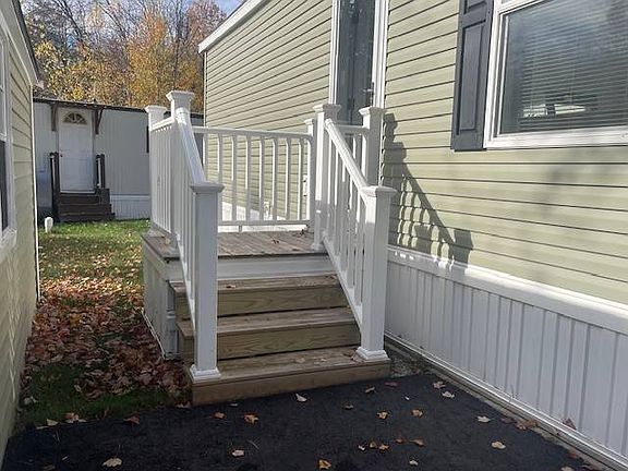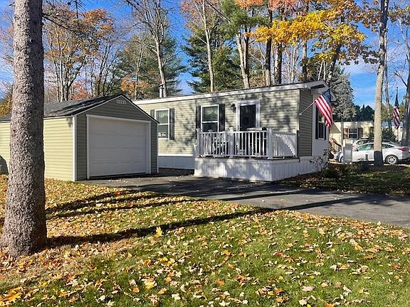 Meticulously maintained manufactured home with 2x6 sheet rock walls, this 14x48 Commodore home with one car garage sitting on a large corner lot with lush grass (maintained by Mainely Grass) and a pair of oak trees creates stunning curb appeal. It's stylish design blends comfort and modern design. Large windows offer in an abundance of natural lighting and warmth from the morning sun. The kitchen boasts sleek white cabinetry and the appliances are stainless steel. Kitchen also offers a large breakfast bar easily seating 4 people. Flooring is wood style laminate throughout, home has attractive crown molding, and lots of recessed lighting. Seller has added full glass doors with removable screens and beautiful shrubbery at front of home. Heating system is Forced Hot Air on Propane and seller boasts on how efficient and low cost it is to heat the place. Schedule your viewing today and experience the tranquility and beauty of this lovely property!! Annual property tax: $621.96 Year: 2023 Size:14x48 + Garage Make: Commodore Serial: CV61052A Lot rent: $750