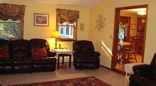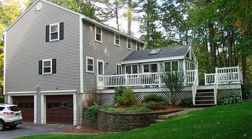 Beautiful colonial on private lot in desired Robinson pond neighborhood. Quiet street perfect for walks & bike rides. Deeded beach access on Robinson pond. Lge cathedral ceiling LR boasts exposed beam, brick hearth, & efficient Harmon pellet stove. Lge eat-in kitchen with counter seating. Updated counters, sink & tile floor. Attached 4-season cathedral ceiling sunroom perfect for pool table or hot tub. Laundry 1st floor. Custom oak staircase. Lge master BR with walk-in closet & updated 3/4 bath. Lge closets in 2nd & 3rd BR. Updated full bath with dual sinks. Finished basement with 2 rooms plus workshop/boiler room. Two-car garage under. Loads of storage under sunroom. Oil boiler with 40 gallon superstore insulated water tank. 200 amp electrical service with transfer switch & wiring for generator. Professionally landscaped yard with stone walls, mulched gardens, & irrigation system. Huge maintenance-free deck. Exterior updated with new roof & vinyl siding. 15 minutes to Route 3 or 93.
