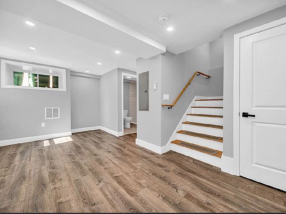 Open-concept layoutFinished lower levelGleaming hardwood floorsAdditional living spaceSleek white cabinetryQuartz countertopsRecessed lighting