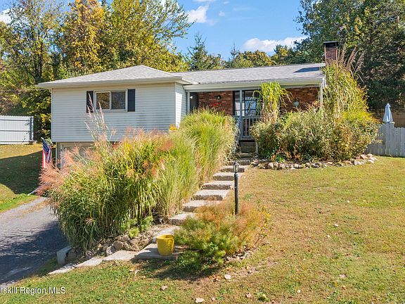 Location, Location, Location!!! This home has a prime location for anywhere in Columbia County. It sits on 1.2 acres on the outskirts of Hudson in the Town of Claverack . The Catskill Mountain views can be seen from the front porch, livingroom and bedroom. This house allows you to enjoy Hudson and all it has to offer yet in a quiet rural setting. The house has an updated kitchen with quartz countertops . The newly installed bamboo hardwood floors shine in the kitchen and livingroom. The master bedroom boasts a view of the Catskills and an ensuite bathroom with a new tiled walk in shower. A 2nd bedroom is located on the first floor with another full bath just around the corner. The kitchen- dining area also boast a laundry closet. Sliding doors open onto a set of floating decks that encompass the backyard and side yard. The basement is completely finished with a walk-out to a 2 car garage. The great room in the basement features a pellet stove that conveys with the house. This space can be used for a family room, game room or changed into more bedrooms. At the end of a long day the front porch offers a beautiful view of the evening sunset. This house has been updated thoughout and features a new roof of 2 years. Traveling to and from locations throughout the county is easy as the house sits only 500 feet from Route 9H. Minutes from Hudson, Route 23 and the Rip Van Winkle Bridge. This home offers a lot for the price.