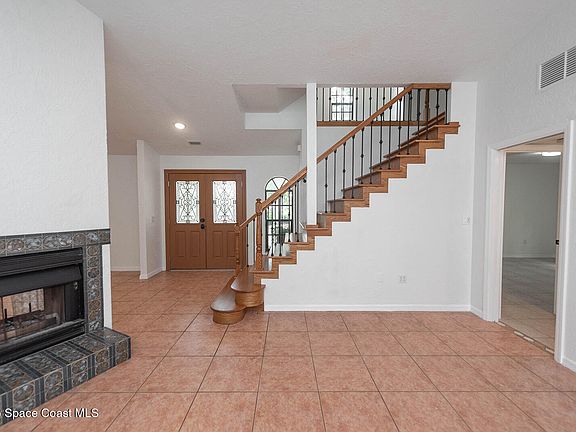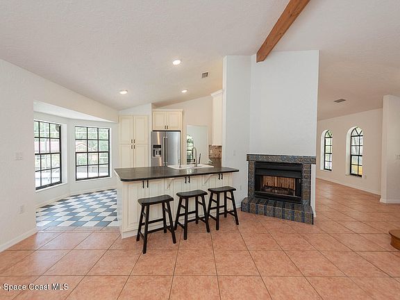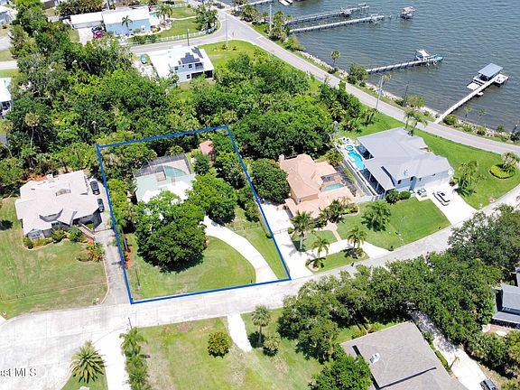 Welcome home to your private oasis on Point View Place, nestled in the waterfront community of custom homes with a boat dock. Upon entering the home through double front doors, you are greeted with vaulted ceilings and exposed beams that showcase the open floor plan. The updated kitchen, complete with stainless steel appliances, a breakfast nook overlooking the pool, and soapstone counters is the perfect gathering place for friends and family. The living area boasts a double-sided wood burning fireplace. Two bedrooms downstairs are on either side of the recently updated bathroom, with a walk-in tiled shower. The primary suite spans the entirety of the second floor. Included in this fabulous suite is an oversized walk-in closet with built-ins, spacious bathroom with double vanity, private deck overlooking the pool and mature landscaping, and an additional seating area that would be a perfect home office space. Step outside to the fully enclosed pool deck, with salt water pool and room for your BBQ and ample seating. In addition to the oversized two-car garage (with A/C), there is a storage shed to house your essentials. The inexpensive HOA includes full access to the private boat dock. Metal roof installed in 2025, fresh interior and exterior paint. The cul de sac street is quiet with direct access to Indian River Drive and only a few miles to Cocoa Village.