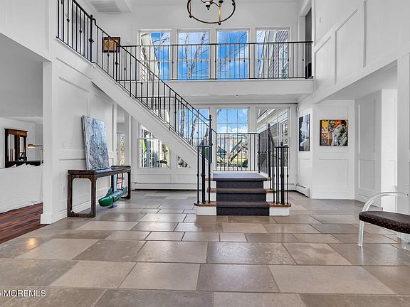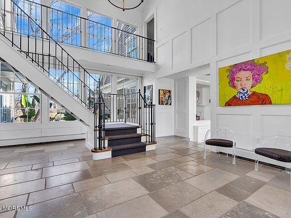 This exceptional home, once part of the prestigious Countess Buxhoeveden estate, seamlessly blends historic elegance with modern sophistication. Designed by a renowned NYC designer, it showcases stunning mid-century details combined with a relaxed coastal vibe. Upon entering, a grand two-story foyer leads to sunlit living spaces, where French doors open to an enclosed porch and patio, offering serene water views of the tranquil tributary that flows into the Shrewsbury River. With 4 generously sized bedrooms, 3.5 beautifully appointed baths, and 3 fireplaces, this home exudes warmth and charm throughout. Situated in an ideal location, just minutes from beaches, top-rated schools, and local amenities, it offers the perfect balance of privacy and convenience.