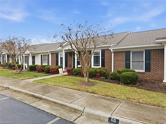 Beautifully maintained one-level townhome located in a desirable Greensboro location! This inviting home features a bright living room with electric fireplace, smooth ceilings, and wood-style flooring flowing into the dining area. The spacious kitchen offers abundant cabinetry, tile backsplash, stainless-steel appliances, center prep island, and built-in double refrigerator/freezer. The primary bedroom includes private access to the patio. Second bedroom offers excellent versatility for guests or office. Full bath with updated fixtures and tile surround. Interior laundry with stacked washer/dryer and storage shelving. Private rear patio is perfect for relaxing, grilling, or gardening with exterior storage and open yard views. Parking directly in front and community sidewalks offer easy convenience. Close to shopping, restaurants, medical facilities, Bryan Blvd, and major highways for quick commuting.
