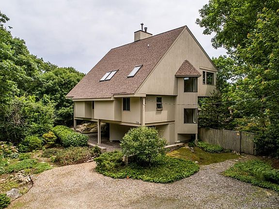 Contemporary commanding a prime 2+ acre lot in the heart of Eastern Point, with walking trail to ocean and moments from Brace Cove, Niles Pond and Eastern Point Yacht Club. Owned continuously by one family, the home has served as primary residence, summer retreat and artist studio. The open and airy design offers living on multiple levels: the second level has four spacious bedrooms, master suite with master bath and bidet, and wrap-around deck opening to landscaped gardens and gunite pool with flagstone deck. The stunning third floor, accessed by a Douglas fir staircase, offers a bookshelf-lined study, loft storage, full bath, living room with wood-burning fireplace with granite hearth, and full kitchen with dumbwaiter from first floor, opening to dining room and expansive deck. A large attic allows for expansion, and detached 2-car garage with workshop and artist's studio. A rare and versatile property in a highly sought-after community, ready for its second chapter.