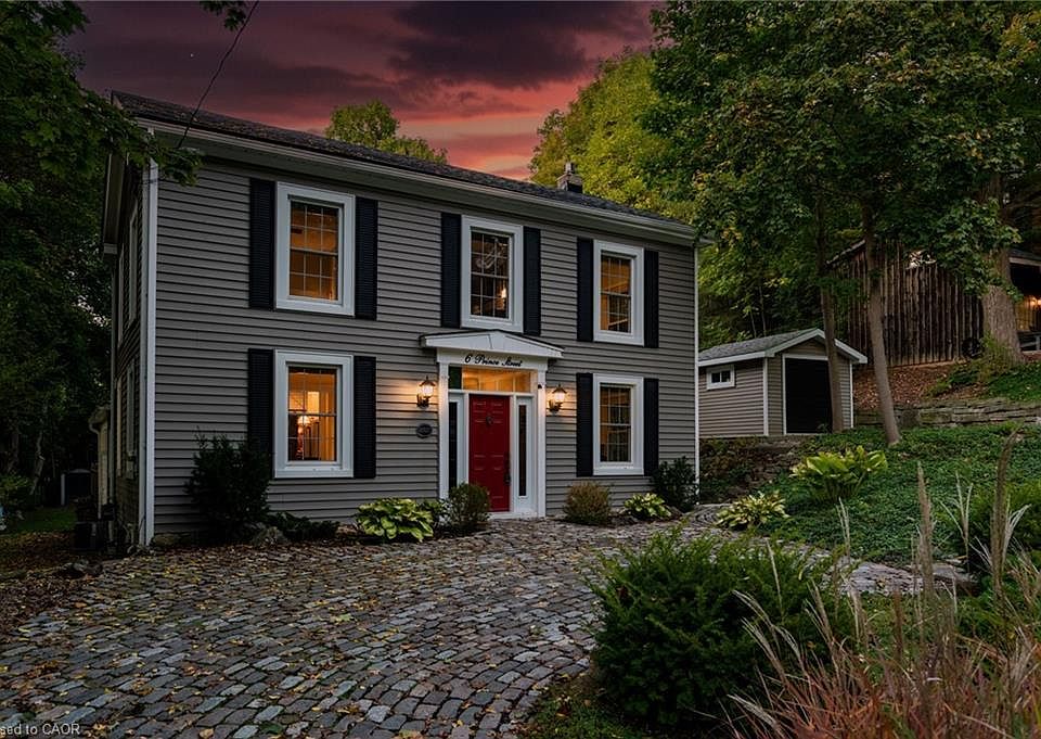 Nestled in the quaint Village of Glen Williams, the Alexander House is a beautifully updated Century Home that blends historical charm with modern living. Since 2017, the current owners have invested over $300,000 in upgrades, making this home ideal for discerning buyers. Upon entering, you'll be captivated by the original 9-inch wide pine plank floors, vintage doors, and high ceilings. The main level features a gorgeous chef's kitchen with a Thermador 48-inch gas range, double ovens, and a griddle, all open to a spacious dining area. Relax by the wood-burning fireplace in the great room or enjoy a cup of tea by the gas fireplace in the library. For convenience, there's also a main-level mudroom/laundry room and a two-piece bathroom. Upstairs, you'll find a stunning Victorian-inspired bathroom with in-floor heating, reminiscent of a spa experience. This level also boasts three lovely bedrooms filled with natural light. Outside, a private oasis awaits with beautiful gardens, a large back deck, and multiple seating areas. An added bonus is the 780 sq ft heated cabin, perfect for a studio, home office, or workshop. The property also includes the original Glen Williams schoolhouse, adding to its rich history. This amazing property is just steps away from popular spots like the Glen Tavern Restaurant, Main Street Market Coffee Shop, the baseball diamond, Copper Kettle Pub, the Credit River, and the Bruce Trail. It's also just minutes from the Go Station and Train. This is a rare opportunity and a must-see! Let's get you home!