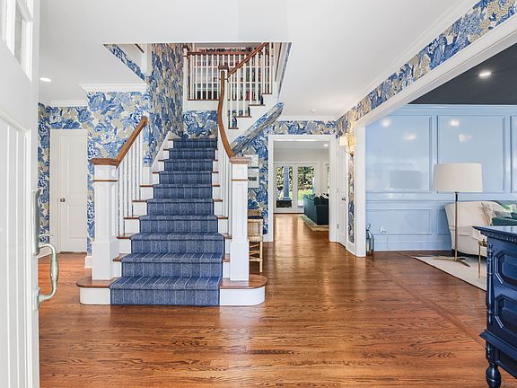 Located on a peaceful cul-de-sac yet just minutes from town, the train, and top-rated schools, this stunning home offers the perfect balance of tranquility and convenience. Inside, you'll find high ceilings, beautiful moldings, custom built-ins, and an open floor plan designed for modern living. The large, renovated kitchen is a true centerpiece, featuring high-end finishes and generous space for cooking, dining, and gathering. The first floor also includes a beautifully updated living room, dining room, private office and a comfortable guest room, ideal for visitors or extended family. Upstairs, you'll find four spacious bedrooms, including a luxurious primary suite, plus a versatile great room perfect for a playroom, gym, or additional lounge space. Set on a full acre of landscaped, fenced-in property, the outdoor area is ideal for both relaxation and entertaining. Enjoy the heated pool, unwind by the outdoor fireplace, or host memorable gatherings in your private backyard retreat. This home combines elegance, comfort, and an unbeatable location.