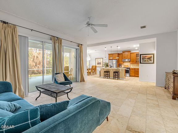 Welcome to this beautifully maintained 3 bedroom, 2 bathroom home in the heart of Palm Coast, offering 1,832 square feet of comfortable living space. With no HOA, this property provides added freedom and flexibility. Step inside to discover stunning tile flooring throughout and vaulted ceilings that enhance the open, airy layout. The spacious kitchen is a standout feature, boasting a large center island, stainless steel appliances, and plenty of counter space, ideal for cooking and gathering. The primary suite offers a peaceful retreat, complete with a generous walk-in closet and a modern en suite bathroom featuring dual sinks and a large walk-in shower. Two additional bedrooms and a second full bathroom provide room for guests, or a home office. Enjoy Florida living year round in the screened in lanai, overlooking a private, low maintenance backyard—perfect for relaxing in peace. Conveniently located near shopping centers, restaurants, and only 20 minutes from the beach, this home offers a great blend of comfort and location.