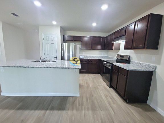 Step inside to a Welcoming Foyer that Opens into a Sun-Drenched Living Area, Ideal for Relaxing or Entertaining. Large Windows and Sliding Glass Doors Lead Out to your Private Patio, Bringing the Outdoors in and Creating a Cheerful, Airy atmosphere. The Heart of the Home is the Center Kitchen, Complete with Deep Cabinetry, an Island including Storage and Bar Seating, and Plenty of Prep Space Perfect for Both Home-Cooked Meals and Takeout Nights. Enjoy a Dedicated Dining Area with Room for a Traditional Table! This Home Will be the Canvas for your New Memories! The Primary Suite is Your Private retreat Featuring a Spacious Walk-in Closet, Double Vanities, and a Walk-in Shower.